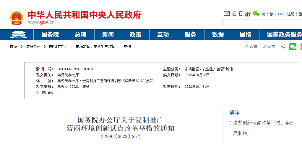 近日,國務院辦公廳發(fā)布關于復制推廣營商環(huán)境創(chuàng)新試點改革舉措的通知。一是進一步破除區(qū)域分割和地方保護等不合理限制,“清除招投標和政府采購領域對外地企業(yè)設置的隱性門檻和壁壘”,二是健全更加開放透明、規(guī)范高效的市場主體準入和退出機制,三是持續(xù)提升投資和建設便利度,“推進社會投資項目‘用地清單制’改革”、“分階段整合相關測繪測量事項”、“推行水電氣暖等市政接入工程涉及的行政審批在線并聯(lián)辦理”、“開展聯(lián)合驗收‘一口受理’”、“進一步優(yōu)化工程建設項目聯(lián)合驗收方式”、“簡化實行聯(lián)合驗收的工程建設項目竣工驗收備案手續(xù)”、“對已滿足使用功能的單位工程開展單獨竣工驗收”等。四是更好支持市場主體創(chuàng)新發(fā)展,五是持續(xù)提升跨境貿(mào)易便利化水平,六是維護公平競爭秩序,七是進一步加強和創(chuàng)新監(jiān)管,八是依法保護各類市場主體產(chǎn)權和合法權益,九是優(yōu)化經(jīng)常性涉企服務。