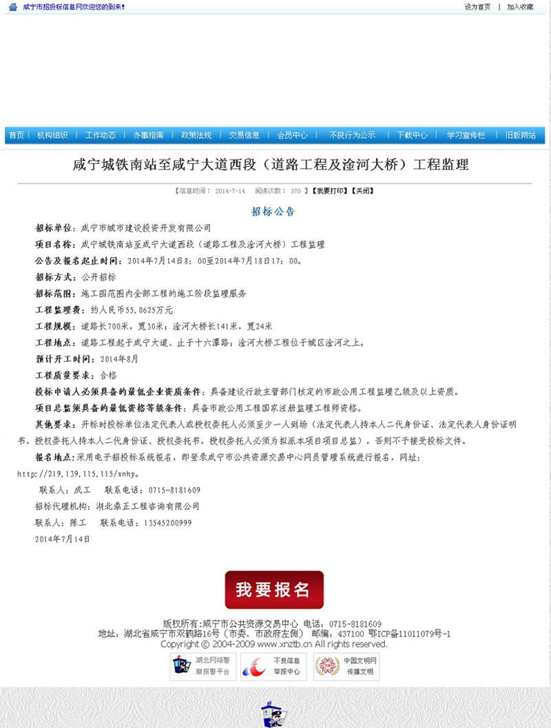 咸寧城鐵南站至咸寧大道西段(道路工程及淦河大橋)工程監理