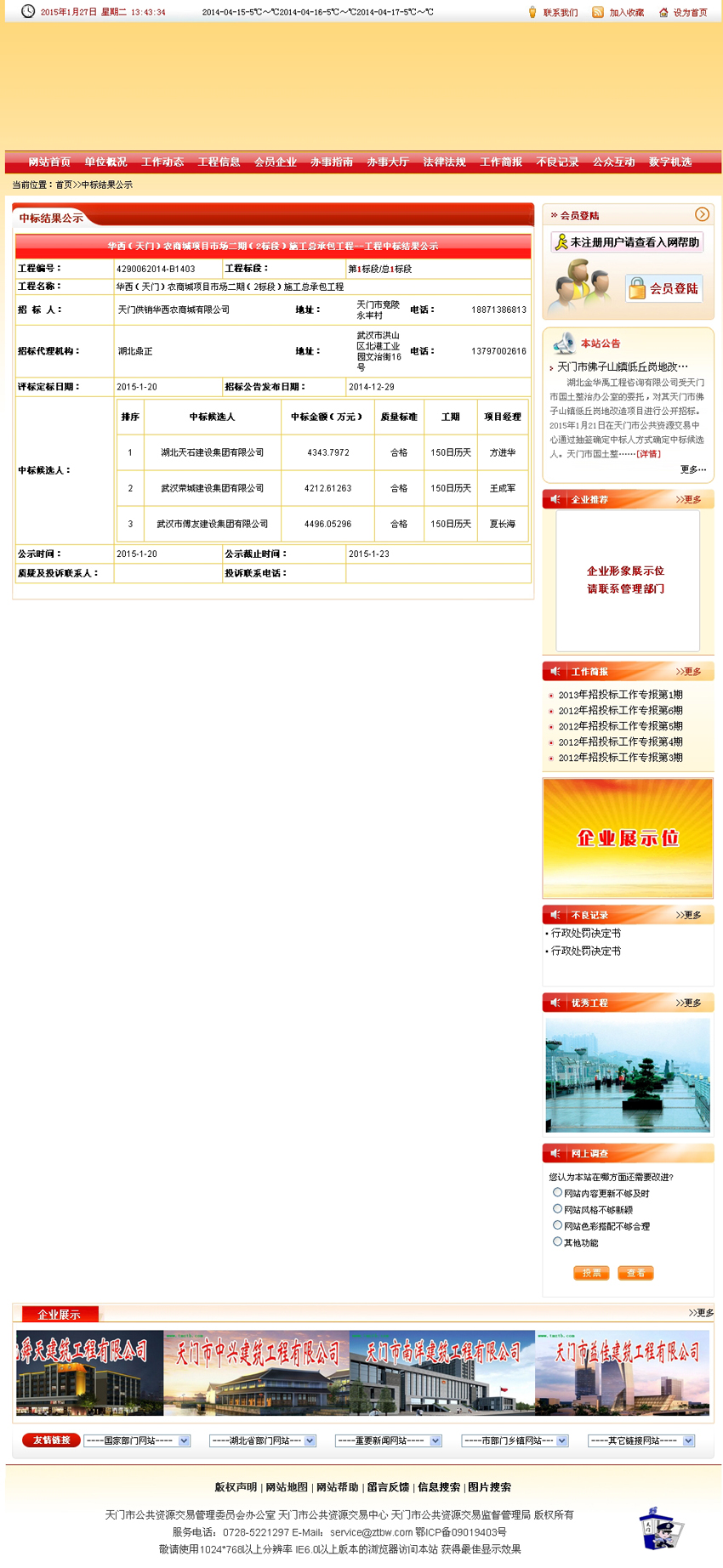華西(天門)農商城項目市場二期(1標段)施工總承包工程