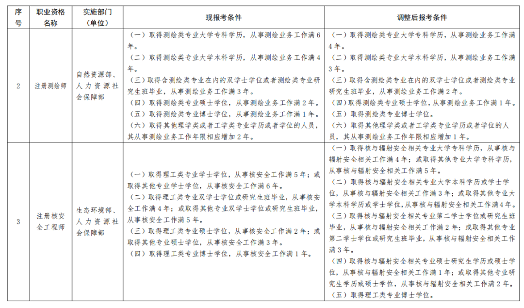 一、《部分準入類職業資格考試工作年限要求調整方案》(見附件)自2022年起實施除調整考試工作年限要求外13項準入類職業資格其他考試報名條件不變