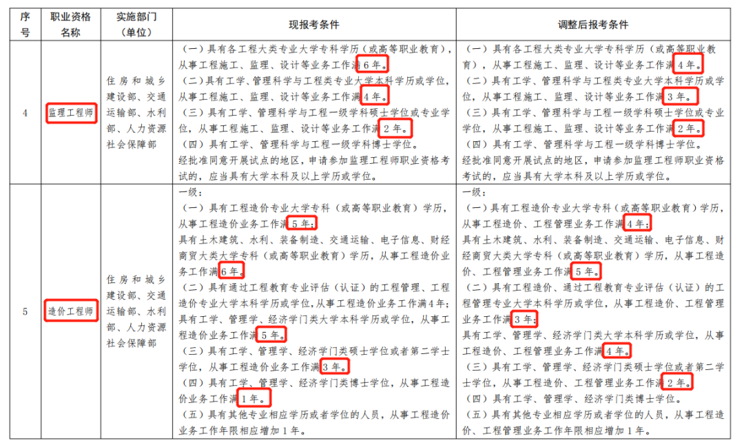 正式通知:2022年起,降低一建、造價、監理等13項考試工作年限!職業資格繼續與職稱對應!