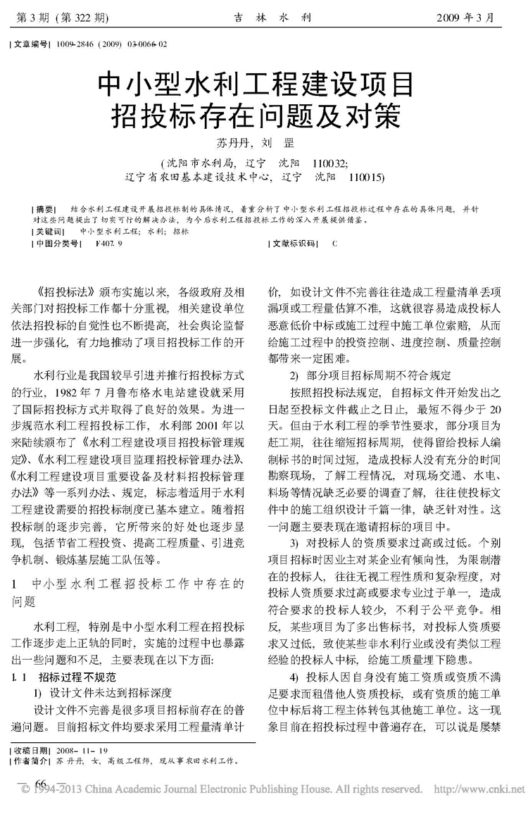 中小型水利工程建設(shè)項(xiàng)目招投標(biāo)存在問題及對(duì)策