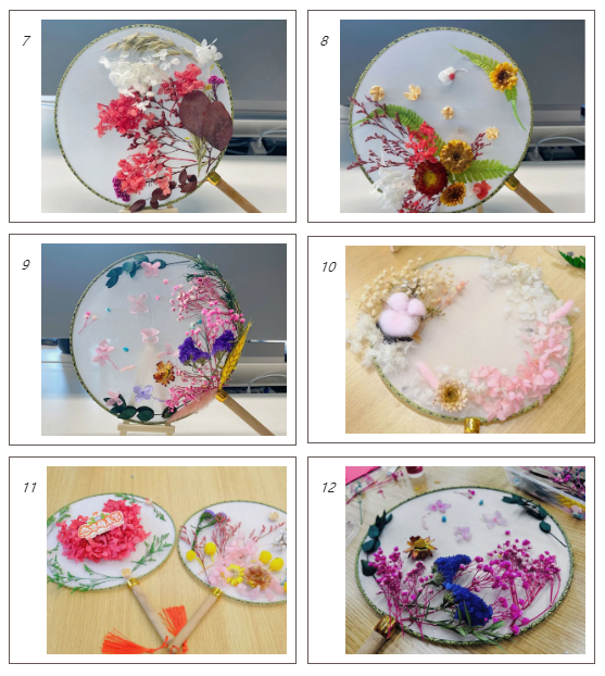 選樣、描線、粘花···一番精心的制作,大家都完成了屬于自己的團(tuán)扇。