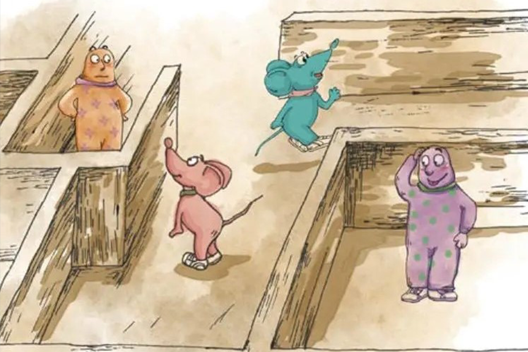 ▲奶酪不見了,小老鼠隨變化而動小矮人卻不愿意接受現實