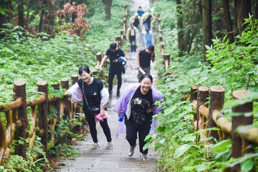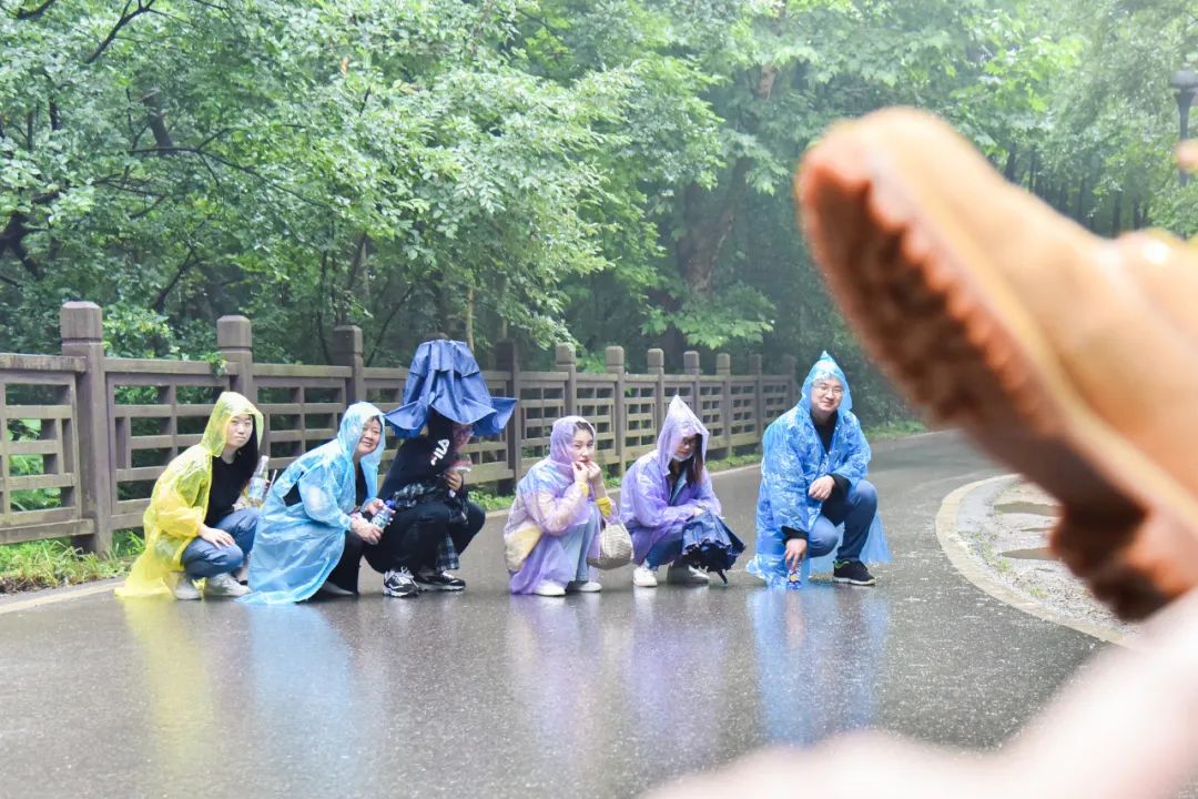 不一會(huì)兒的功夫,雨越下越大,一群舍不得下山的人還在努力拍照。