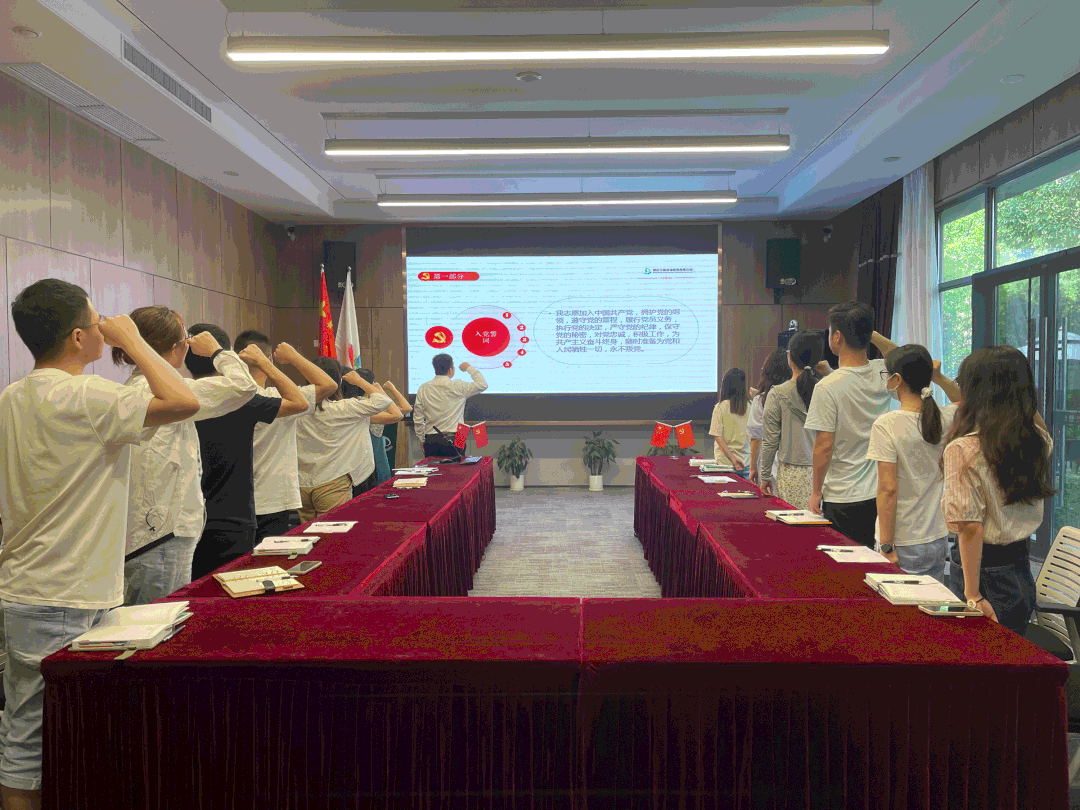 錚錚誓言,將把鐵一般的信念,鐵一般的擔當,鐵一般的紀律融入每一位黨員的血脈,支部全體黨員在黨支部書記張虎同志的帶領下,以飽滿的精神、鏗鏘有力的聲音,重溫入黨誓詞,并在黨旗下許下為推動行業創新、推動國家發展獻上一份力量的莊嚴承諾。