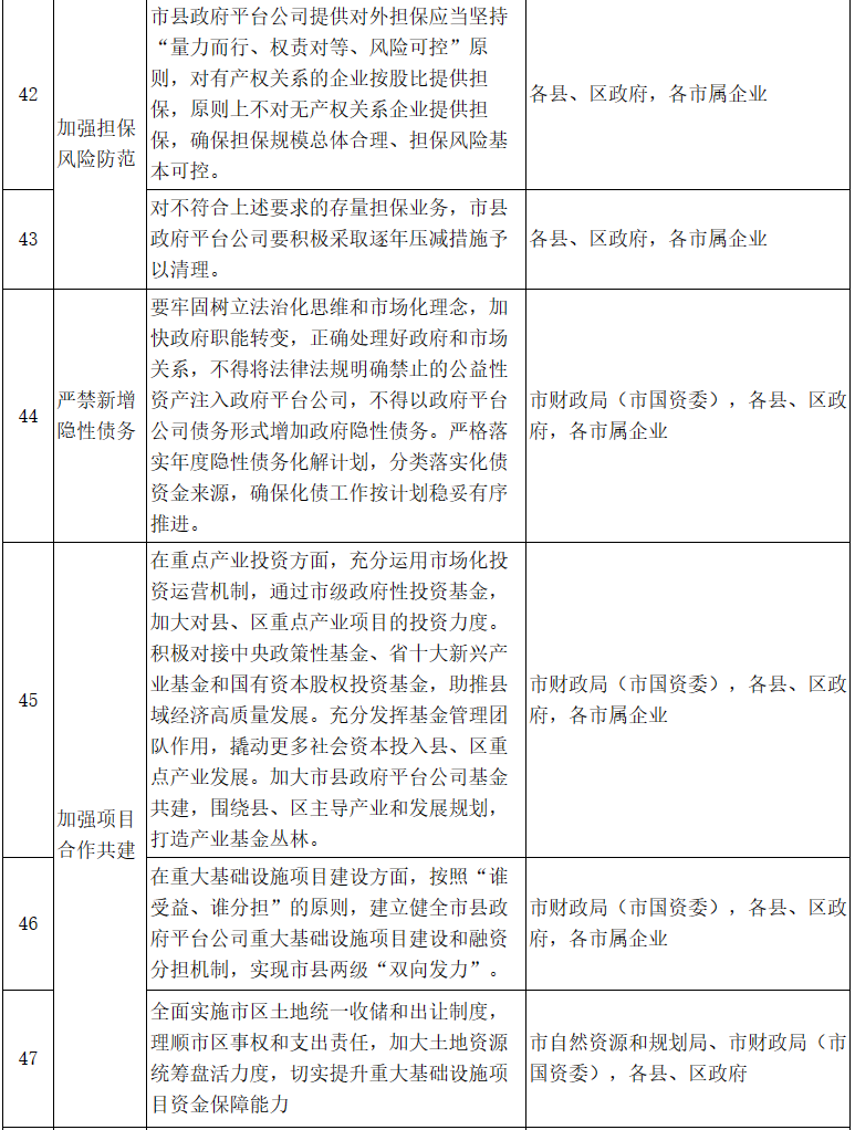 市縣政府平臺公司整合升級和市場化轉型“12345”行動計劃重點任務分工表