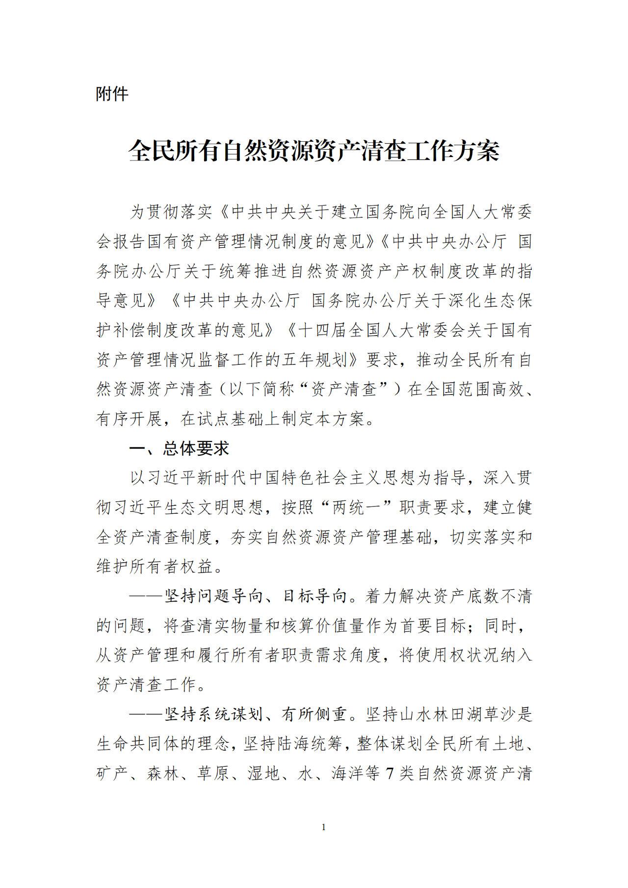 現將《全民所有自然資源資產清查工作方案》印發你們,請認真組織實施。工作中遇到重要情況和問題請及時報告。