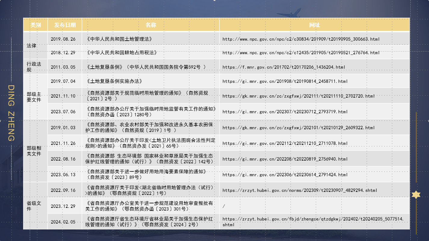 近年來,為規范和嚴格臨時用地管理,切實加強耕地保護,促進節約集約用地,國家和各省市區相繼出臺了一系列政策文件加強臨時用地管理,本文將以湖北省為例,基于政策結合實際就辦理臨時用地過程中最核心的問題進行政策提煉和經驗分享。