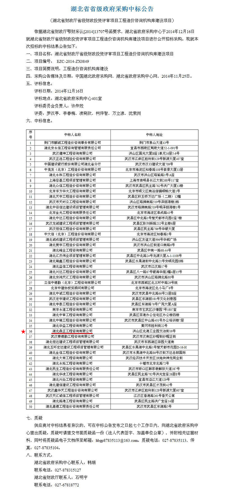 【經營成果】我司入選湖北省財政廳省級財政投資評審項目工程造價咨詢機構庫
