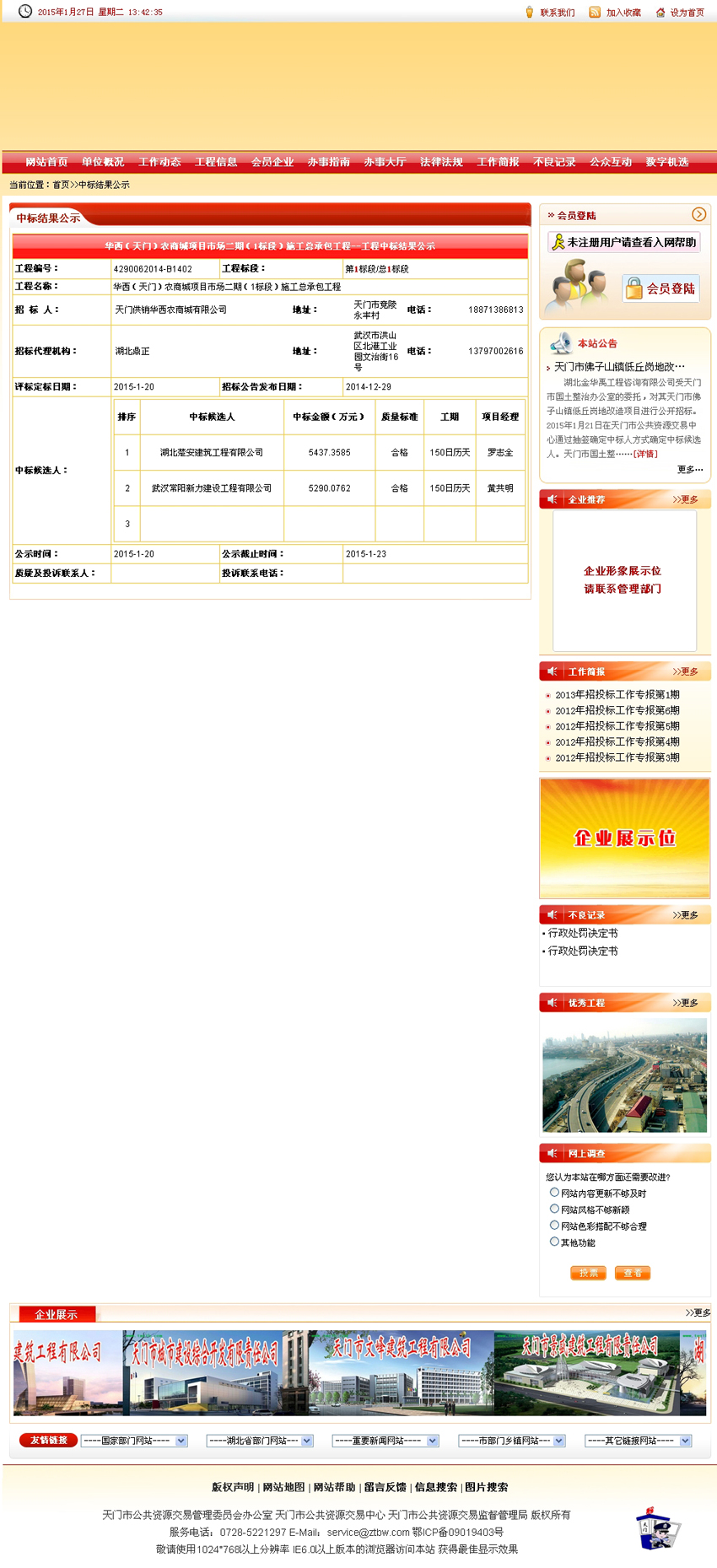 華西(天門)農商城項目市場二期(2標段)施工總承包工程