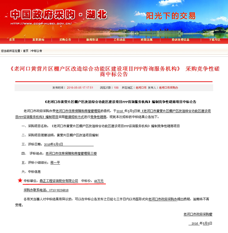 【經(jīng)營成果】我司中標(biāo)老河口市黃營片區(qū)棚戶區(qū)改造綜合功能區(qū)建設(shè)項(xiàng)目PPP咨詢服務(wù)機(jī)構(gòu)編制競爭性磋商項(xiàng)目