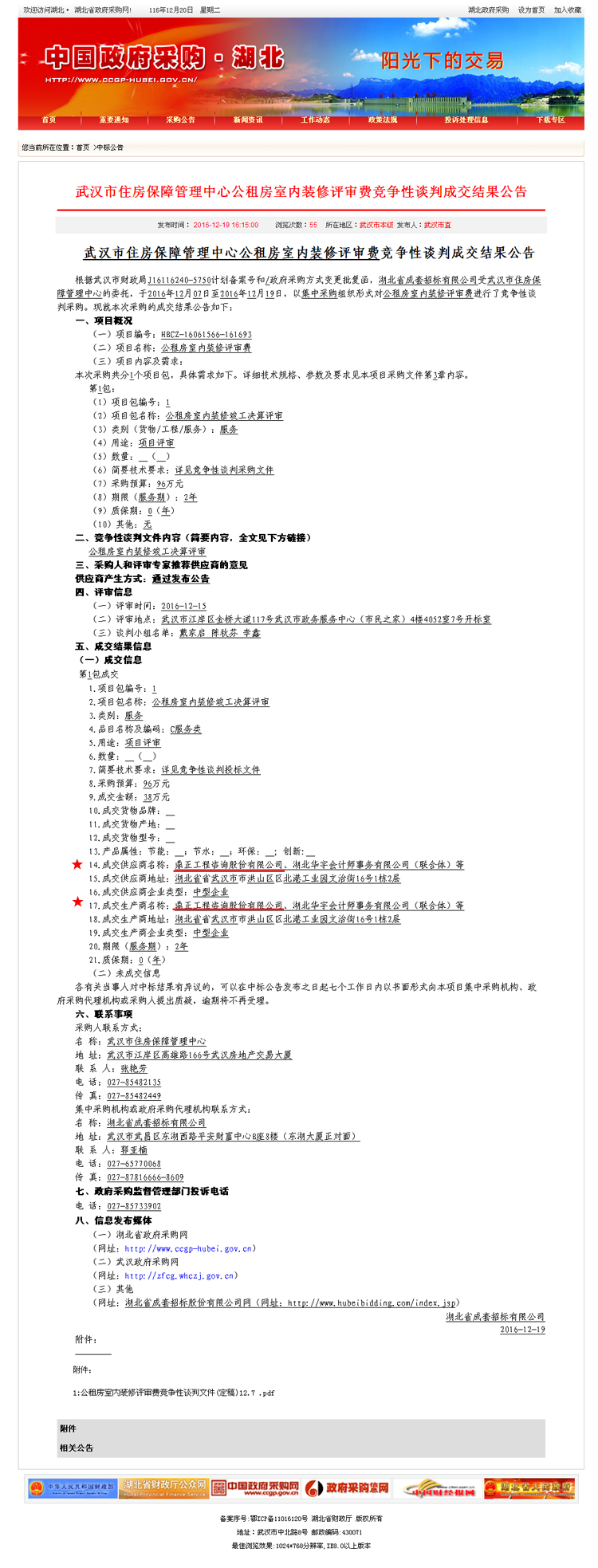 【經營成果】我司中標武漢市住房保障管理中心公租房室內裝修評審費競爭性談判項目