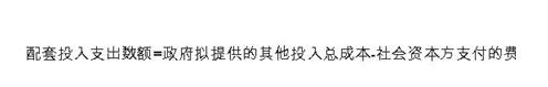 第二十二條 配套投入支出責任應綜合考慮政府將提供的其他配套投入總成本和社會資本方為此支付的費用。配套投入支出責任中的土地等實物投入或無形資產投入,應依法進行評估,合理確定價值。計算公式為: