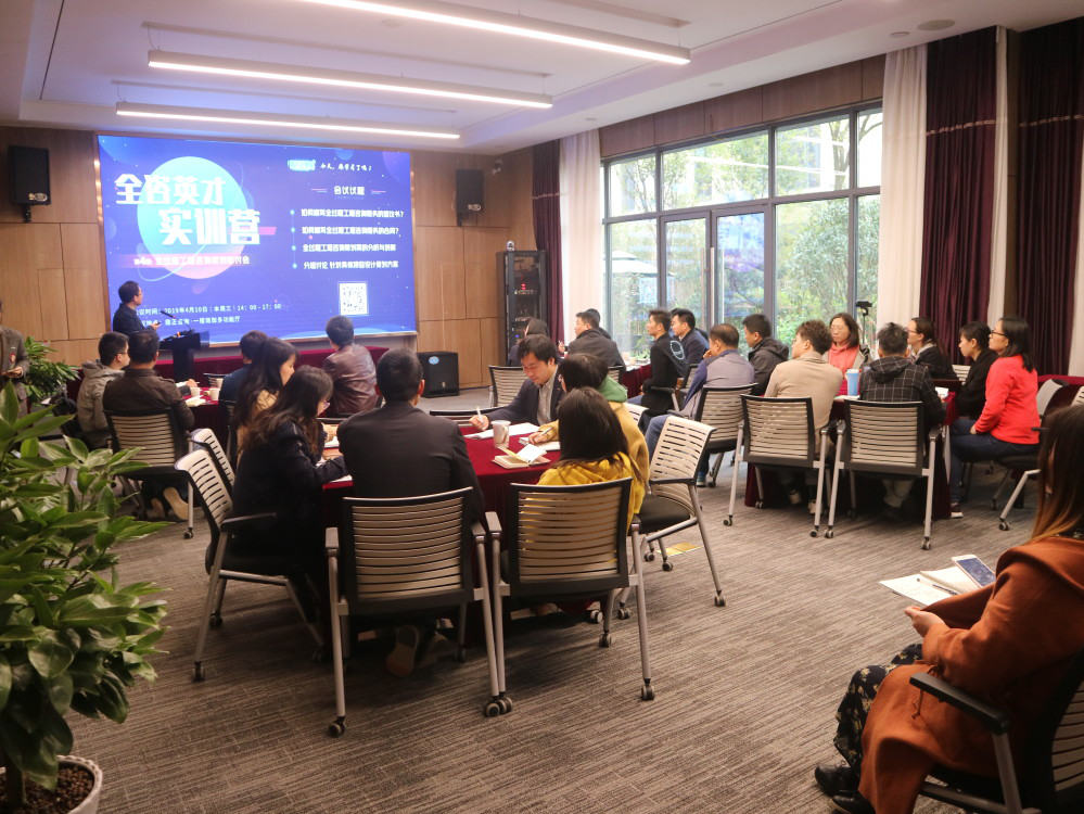 4月10日下午兩點,全咨英才實訓營第四期—全過程工程咨詢策劃研討會在我司一樓珞珈多功能廳隆重開講。