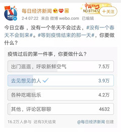 今天,2020年2月14日,一個(gè)特殊的情人節(jié)!想從一個(gè)近期的網(wǎng)絡(luò)投票說起:“疫情過后的第一件事,你要做什么?”