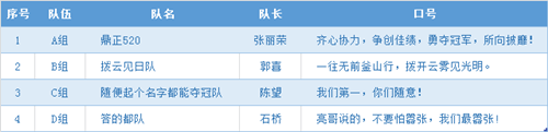 ▲各組霸氣的隊(duì)名和口號(hào)